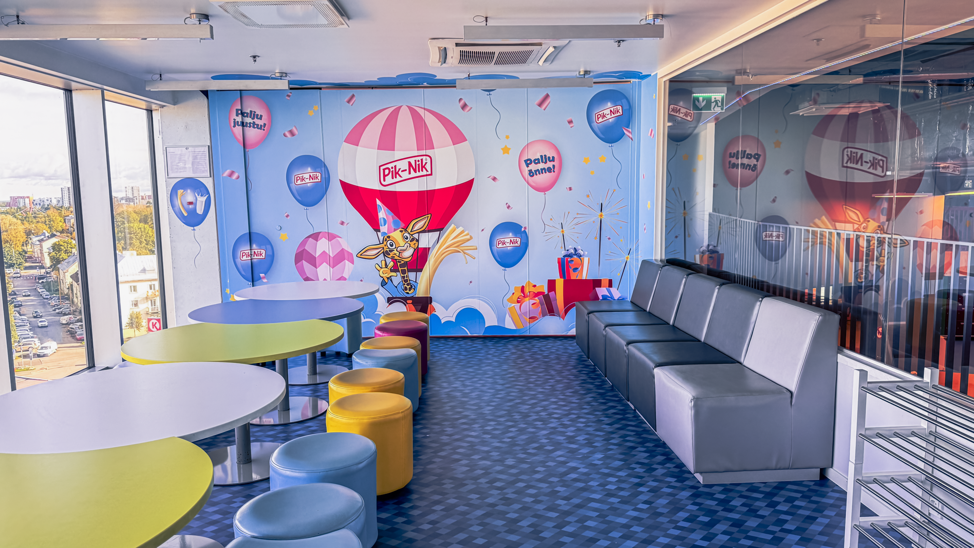 Peotoa rent sisaldab 20 pääset, mis tagab peo ajal batuudi- ja mängukeskuse kõigi atraktsioonide kasutamise. Toas on madalad lauad, mugavad diivanid ja rõõmsavärvilised tumbad. Kohe ümber nurga on abiköök külmkapi, valamute, mikrolaineahju ja veekeetjaga ning seal asuvad peotubades kasutamiseks vajalikud vaasid, kausid, kandikud, tordilabidad ja -noad, morsikannud. Peo kestus 2,5 h. Toa suurus on 27m², mis mahutab mugavalt kuni 35 külalist sh. laste saatjad. |